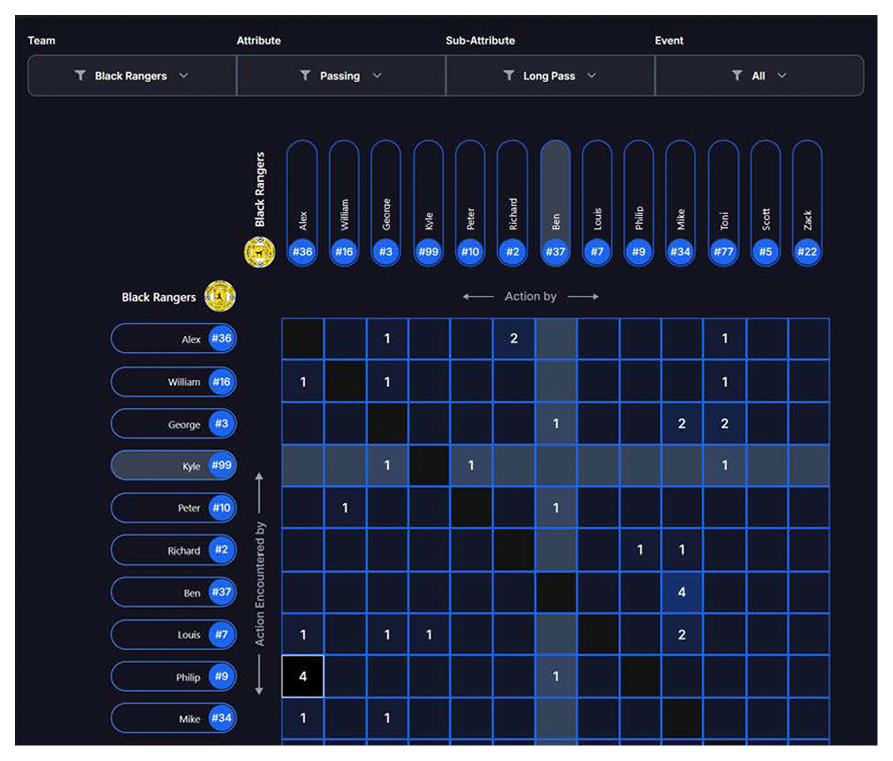 Elke belangrijke actie direct terug te zien. Geen knipwerk of analist nodig – alles overzichtelijk per speler en team.
