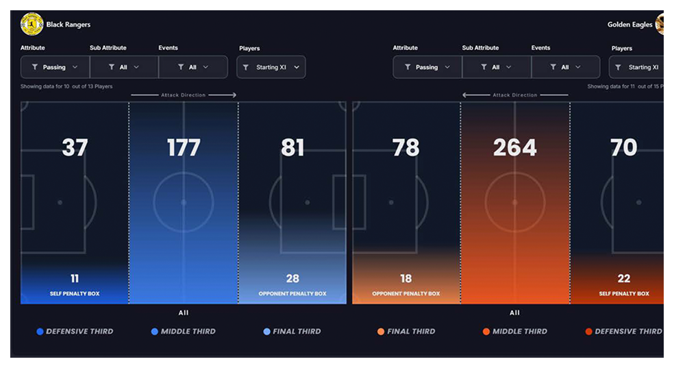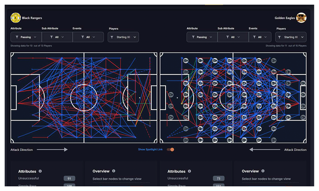 Onze tools vertalen data naar inzicht – van wedstrijdoverzicht tot spelerstatistieken en geavanceerde vector field maps.